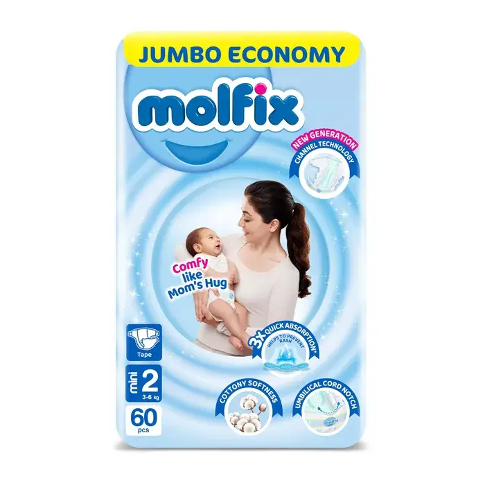 حفاضات مولفكس للأطفال رقم 2 ميني (60 قطعة) Molfix Baby Diapers NO.2 Mini (60 Pcs)